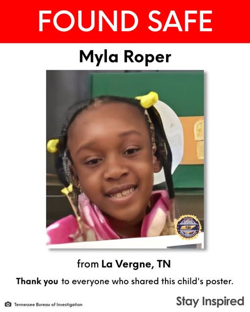 The Tennessee Bureau of Investigation (TBI) confirmed that Myla, who had been missing since March 27, 2026, from La Vergne, Tennessee, was successfully located in Alabama. The announcement brought a wave of relief not only to her family but also to thousands of people who had followed her story and helped spread awareness.