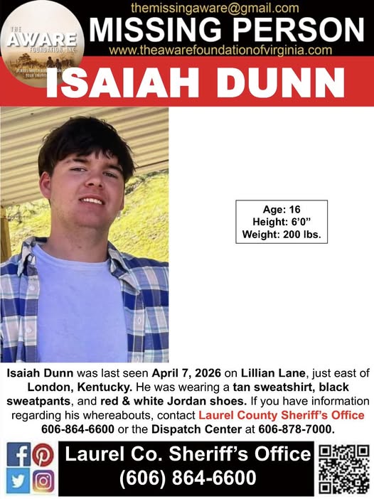 Authorities and community members are urgently searching for missing teenager Isaiah Dunn, who was last seen in the early hours of April 7, 2026, in London, Kentucky. The case has sparked growing concern across Laurel County as officials and family members continue working tirelessly to locate him and bring him home safely.
