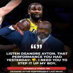 🚨 Shaquille O’Neal Calls Out Deandre Ayton After Lakers Debut — “That Performance? 👎 Step It Up, My Boy.” Deandre Ayton’s highly anticipated debut in a Los Angeles Lakers jersey didn’t go as planned — and NBA legend Shaquille O’Neal wasted no time letting him know it. In a blunt on-air moment that immediately went […]