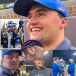In a quiet yet profoundly moving moment during last night’s Dodgers game against the Giants, pitcher Blake Treinen turned a standard game-day ritual into a heartfelt tribute that left fans and spectators talking. On his cap, Treinen had written “Charlie Kirk” flanked by two crosses — a small but striking gesture honoring the late political […]