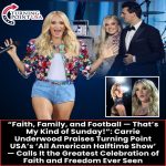 It started as a quiet backstage moment — and ended up shaking the internet. When Carrie Underwood first heard about Turning Point USA’s “All American Halftime Show”, the country superstar didn’t just smile. She lit up. Witnesses say she paused mid-conversation, eyes glimmering, and whispered, “This… this is who we are.” That single line — […]