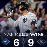 New York exploded. Yankee Stadium was rocking as the home team staged a stunning comeback, defeating the Toronto Blue Jays 9-6, cutting the lead to 1-2 in the ALDS series. On a night when all eyes were on Aaron Judge, superstar No. 99 did not disappoint: 3 hits in 4 innings, including a homer, a […]