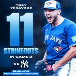 TORONTO — On a historic night at Rogers Centre, Trey Yesavage made Game 2 his own. With 11 strikeouts — the most by a Toronto Blue Jays pitcher in a single postseason game — the young rookie left the Yankees’ battering ram in a state of disbelief. The crowd erupted after each of his cool, […]
