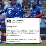 Major League Baseball has witnessed power before — but never like this. The 2025 Toronto Blue Jays are rewriting the postseason record books with a display of pure offensive destruction that has left fans and analysts speechless. After Daulton Varsho’s thunderous home run, Toronto officially made history: 23 runs scored in their first two postseason […]