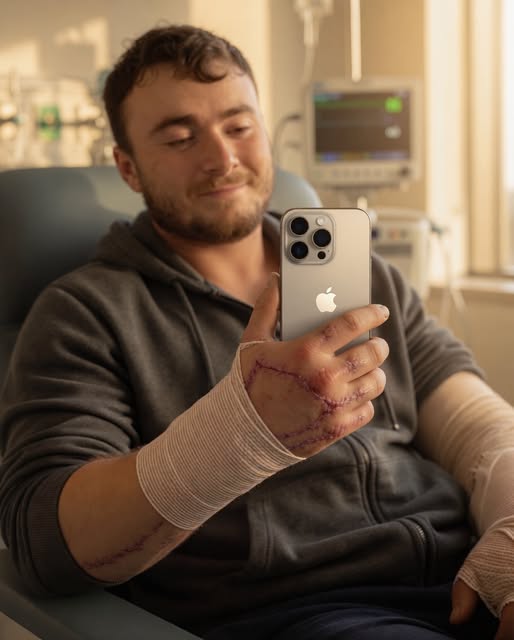 Just months ago, Hunter’s future looked heartbreakingly uncertain. After suffering devastating injuries while working to restore power in dangerous conditions, he endured multiple surgeries and unimaginable physical pain. Doctors warned that nerve damage and trauma could permanently affect his ability to use his hands. Something most of us take for granted — holding a phone, gripping a cup, feeling the warmth of another hand — suddenly became a distant possibility.