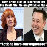 “Actions have consequences”: Kathy Griffin Files for Bankruptcy Just One Month After Messing With Elon Musk March 21, 2023 by Alex Bruno Categories: Satire Los Angeles, CA – In a stunning turn of events, comedian and actress Kathy Griffin has filed for bankruptcy just one month after making fun of billionaire entrepreneur Elon Musk on social media. The […]